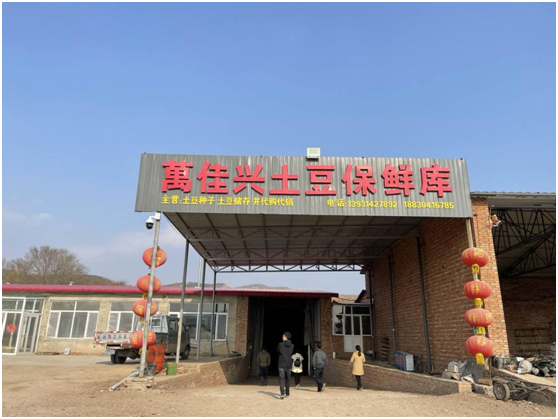 銷售端直接影響著生產端,甚至倒逼生產端不斷升級。穿過曲折的鄉間小路,記者跟隨郭學平來到了郭家位于新地村的土豆保鮮庫,實地走訪了土豆的存儲基地。據郭學平介紹,一個土豆保鮮庫大概能存儲8000噸左右的土豆,他們有3個保鮮庫,總存儲量可達2.5萬噸。