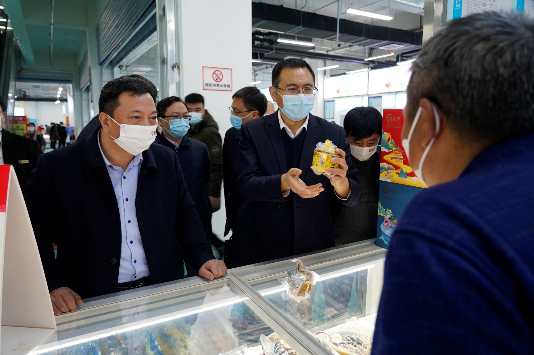 都建華書記一行在集團展廳,聽取了魏樹儉總裁對企業運營現狀和未來規劃的詳細介紹,對標準化基地種植、食品檢測追溯、農業大數據以及二期重點項目等內容作了細致了解。隨后,考察組一行又深入農副產品物流園、智慧冷鏈物流園,實地了解項目運營模式、產品交易情況,同時到食品加工產業園考察項目建設情況。