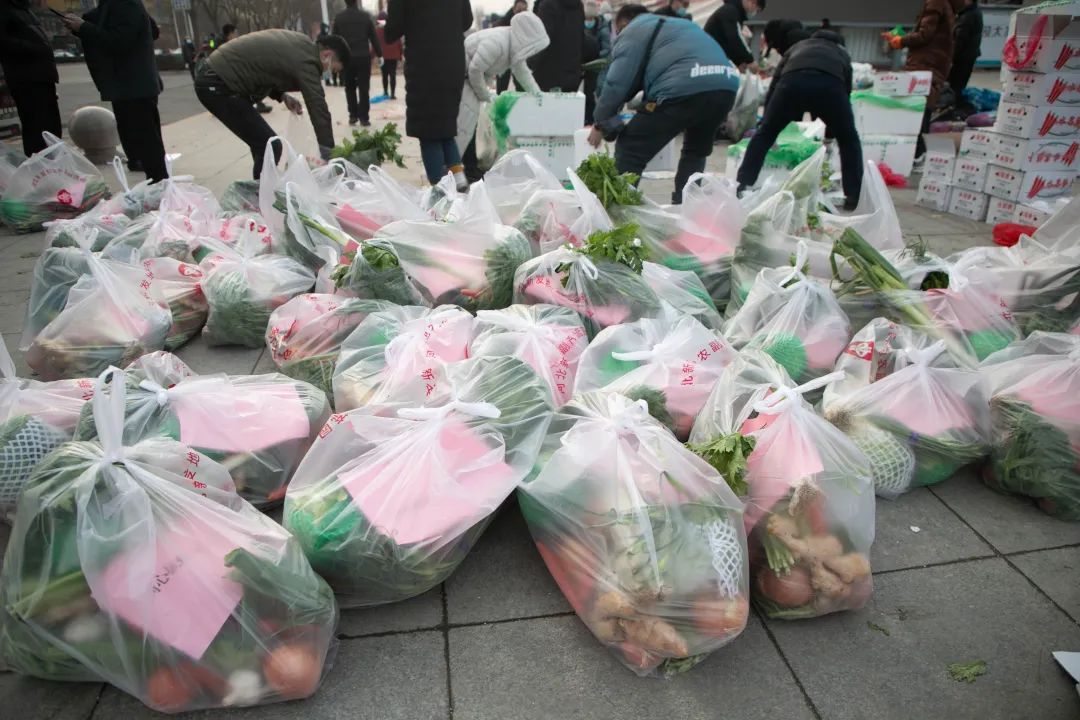 下午三時(shí),滿載著新鮮蔬菜的兩輛貨車從首衡河北新發(fā)地農(nóng)副產(chǎn)品物流園強(qiáng)農(nóng)門駛出,交付淶水縣疫情防控辦,進(jìn)行分裝后,最終運(yùn)輸至龍安村,并于晚上有序分發(fā)到封控區(qū)的百姓手中。