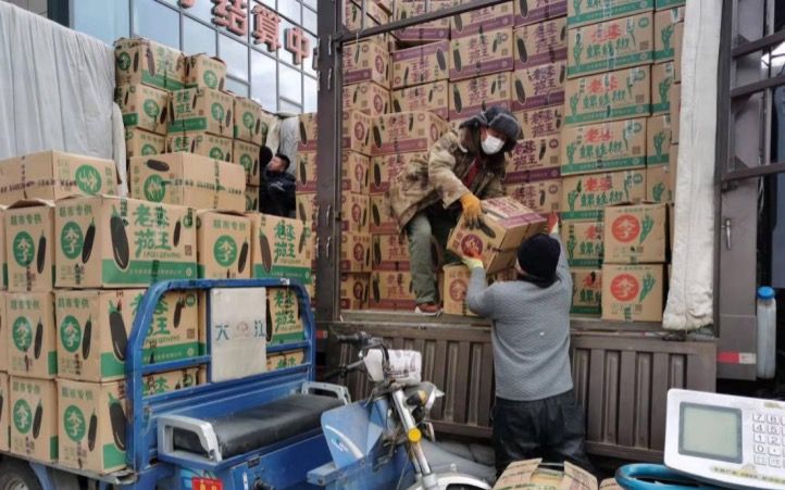 蔬菜交易區(qū)的李雪坤,主營甘藍(lán)和茄子,正在給內(nèi)蒙古的超市發(fā)貨,李雪坤在湖北、云南、甘肅等地分別設(shè)置了甘藍(lán)、圓茄、洋蔥種植基地,貨源充足。李雪坤表示,除了京津冀,東三省、內(nèi)蒙古、山西等地的訂單都排到年底了,所有工作人員都就地過年保供了,不能斷了檔。