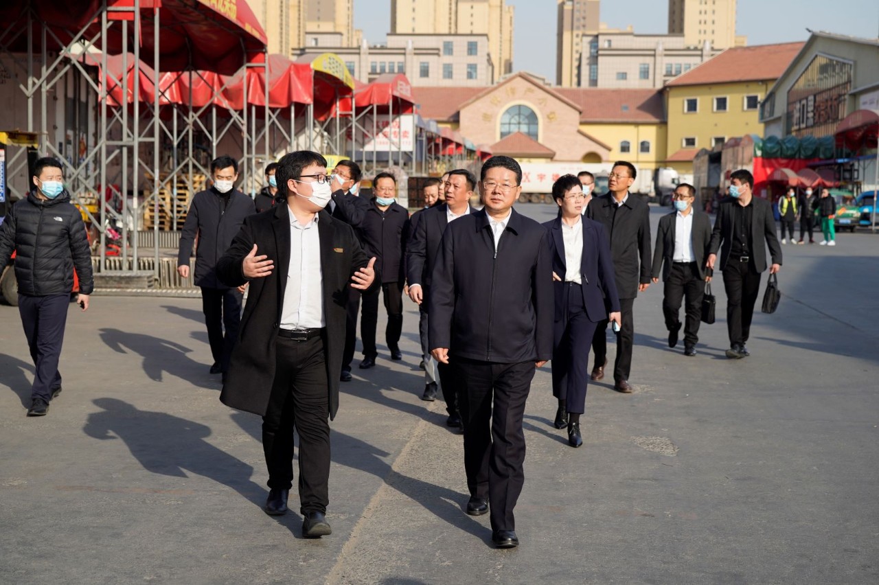 3月3日,高陽縣縣委書記高懷軍,縣長蔣東方等領導一行到首衡河北新發地考察調研,集團總裁魏樹儉等領導陪同考察,雙方就未來合作展開深入交流。