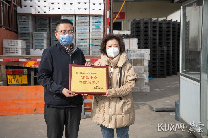 活動現場,該市場為13家商戶頒發“食品安全誠信經營商戶”牌,倡導誠信商戶帶動全體商戶按照法律法規和行業標準依法經營、誠信經營、文明經營,讓消費者買得放心、吃得安心,守護好百姓“舌尖上的安全”。