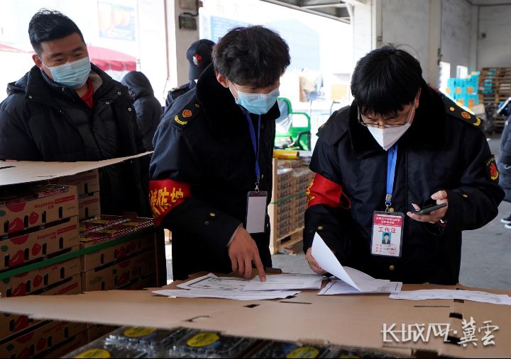在商戶周金義的檔口,市場工作人員正在對進場水果的產品產地、“一單三證”、進場時間等信息進行登記備案,并對所有出庫貨物張貼“追溯二維碼”。在首衡智慧冷鏈物流園,商戶也嚴格執行產品賦碼銷售制度,產品入庫完成后錄入河北省冷鏈追溯系統,貨物全部賦碼,做到所有產品“上能溯源頭,下能追去處。”