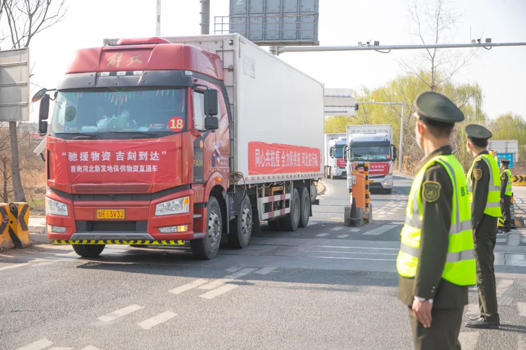 恰逢清明小長(zhǎng)假,高速車(chē)流量增大,為確保保供直通車(chē)順暢通行、安全抵達(dá)。在從高碑店到吉林的整個(gè)運(yùn)輸過(guò)程中,河北省高速交警總隊(duì)安排十幾名交警全程護(hù)航確保行程安全。從高碑店至吉林,需要十多個(gè)小時(shí)的車(chē)程,首衡河北新發(fā)地還為司乘人員悉心準(zhǔn)備了面包、火腿等方便食品,保障司機(jī)物資充足。