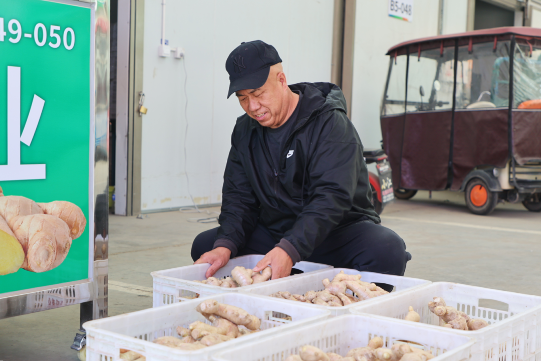 僅僅半個月前,王者富還只是唐山豐潤區一位坐地售賣的姜農,現在他有了一個全新的身份——首衡高碑店市場商戶。依托這座京津冀地區最大的蔬菜流通樞紐,他一手牽著唐山地區的姜農,一手鏈接京津冀上百個終端客戶。