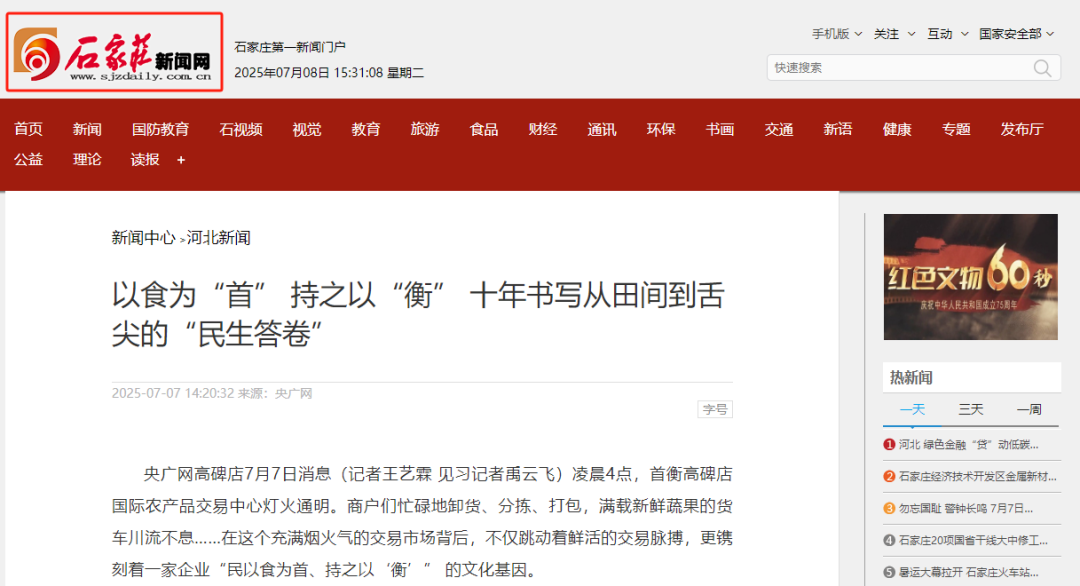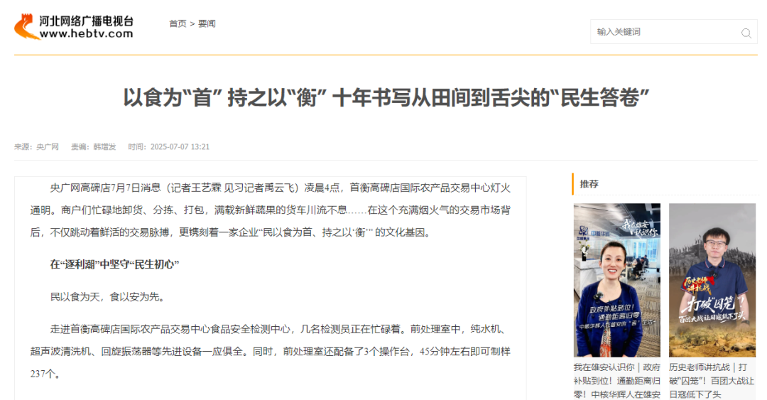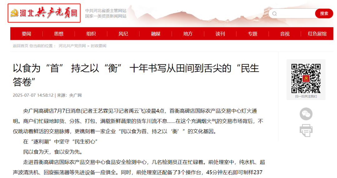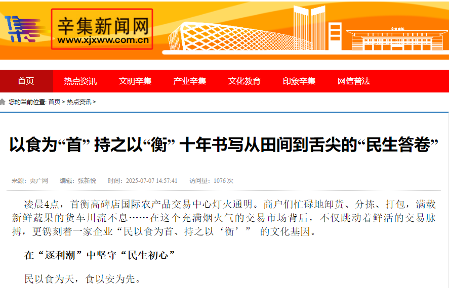 近日,一篇題為《以食為“首” 持之以“衡” 十年書寫從田間到舌尖的“民生答卷”》的新聞報道,得到20多家各級主流媒體的關注和廣泛傳播。報道稱:首衡在“逐利潮”中堅守“民生初心”,在“快時代”里深耕“慢產業”,在謀發展中展“首衡擔當”。該報道截至目前瀏覽量已突破2000萬+。