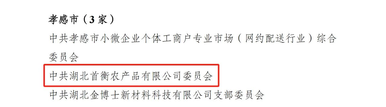 近日,省“小個專”綜合黨委印發通知,通報表揚全省“小個專”先進黨組織、優秀共產黨員、優秀黨建指導員和優秀黨務工作者,中共湖北首衡農產品有限公司委員會榮獲全省“小個專”先進黨組織稱號。