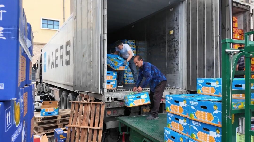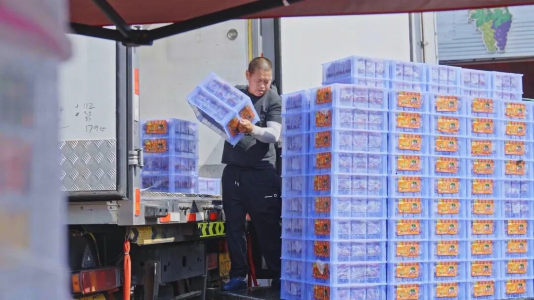 上午八點,首衡高碑店市場早已人聲鼎沸。53歲的姜建民彎下腰,肩膀穩穩接住一箱80斤重的蘋果。汗珠順著安全帽帶滾落,洇濕了工裝的領口?!耙惶彀醾€十幾噸,力氣活,習慣了!”他說道。