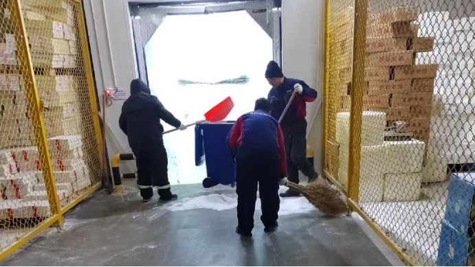 一群身著厚重棉服的身影,正手持冰鏟,在零下18度的冷庫中,一絲不茍地清理著管道和門縫間的積冰。不過十幾分鐘,當他們輪換著走出庫門,汗水又瞬間浸透衣衫,冷熱交替帶來的不適感清晰寫在臉上。