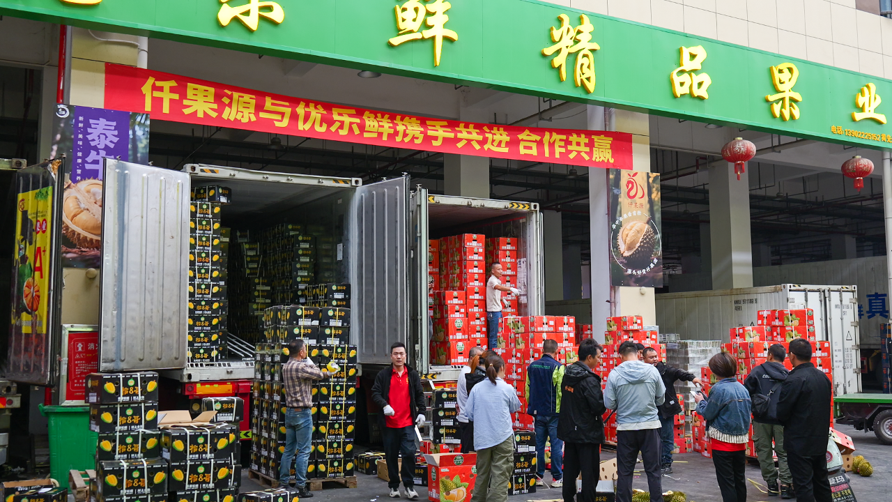 “剛到的三柜金枕榴蓮,差不多都被訂空了!”在進(jìn)口水果區(qū),經(jīng)營(yíng)了近十年水果生意的鄭老板正指揮工人搬貨,她手里的銷售臺(tái)賬上,紅色標(biāo)記的“大客戶訂單”占比超六成,“以前中秋賣榴蓮,客戶多是‘論箱拿’,今年不少商超和企業(yè)客戶直接批量下單。”