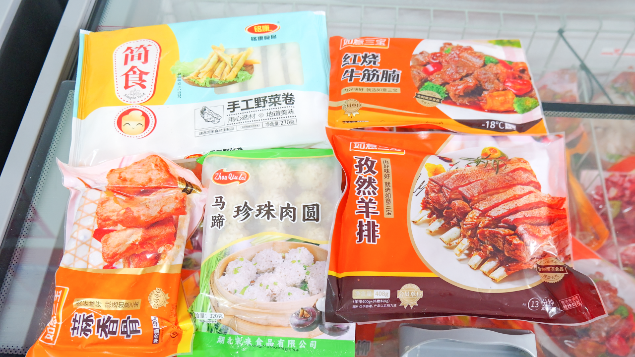 預(yù)制菜則成了新的“餐桌救星”。在C區(qū)綜合交易區(qū),馬蹄珍珠肉圓、紅燒牛腩、孜然羊排等即熱即食的菜品被整齊碼放。包裝上清晰標(biāo)注著加熱時(shí)間和營(yíng)養(yǎng)成分?!耙郧邦A(yù)制菜多是餐館采購(gòu),今年家庭客戶占比有所提高”,銷售人員拿起一罐盧大師口蘑排骨湯介紹,“配料有口蘑、豬龍骨、純凈水、鹽,小火加熱至沸點(diǎn)就能端上桌,既省時(shí)間又有檔次,特別適合中秋家庭聚餐?!睆倪M(jìn)口尖貨到國(guó)產(chǎn)精品,從新鮮食材到便捷預(yù)制菜,首衡城的“爆款清單”,正印證著消費(fèi)者的需求轉(zhuǎn)變:不再滿足于“吃飽”,而是追求“吃鮮、吃好、吃便捷”。