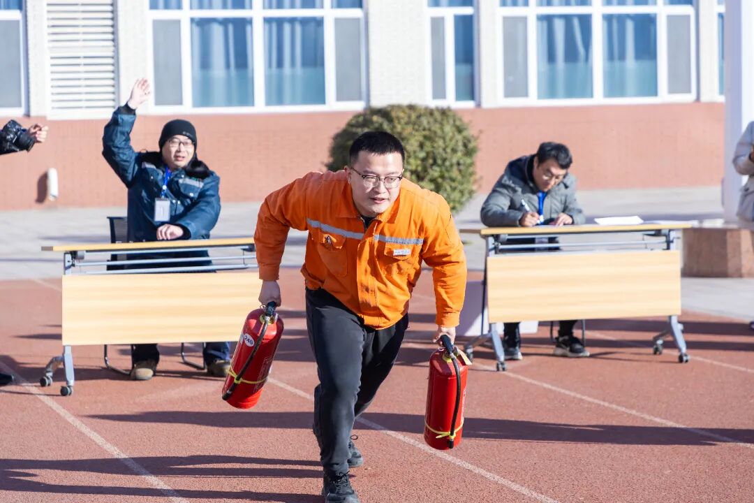 比賽現(xiàn)場氛圍緊張有序,首衡參賽選手們各個精神飽滿、奮勇爭先。答題環(huán)節(jié),隊員們憑借扎實的消防知識儲備沉著應(yīng)對、精準(zhǔn)作答;滅火器實操環(huán)節(jié),隊員們手提兩具滅火器快速跑完 50 米賽程,抵達(dá)指定區(qū)域后嚴(yán)格按照 “提、拔、握、壓” 的標(biāo)準(zhǔn)流程完成滅火操作,動作規(guī)范利落、一氣呵成;水帶水槍連接環(huán)節(jié),隊員們快速甩開水帶、精準(zhǔn)對接接口,整套動作連貫流暢,展現(xiàn)出了新時代企業(yè)職工過硬的消防技能和昂揚的精神風(fēng)貌。