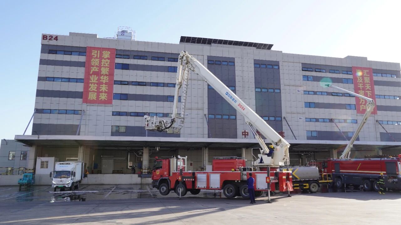 在人員疏散完畢后,演練進入火情協同處置階段。永州市消防支隊救援人員抵達現場后,與園區應急搶險組密切配合,迅速展開火情偵察、水槍陣地架設、云梯搭救等操作。消防戰士們熟練運用消防水車精準對著火點進行撲救,園區應急人員則協助連接消防水源、傳遞救援器材,雙方協同作戰,高效完成"火情"處置任務。通過真實的場景模擬和專業的協同配合,讓在場商戶和員工直觀感受到火災救援的緊張氛圍與團隊協作的重要性。