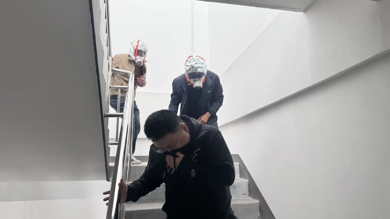 此次演練以園區保鮮庫突發火情為模擬場景,全程還原火災應急處置全流程。下午3時整,隨著"火情"信號發出,園區值班人員在發現"火情"后,立即按照應急預案啟動警報系統,通過廣播通知園區內人員緊急撤離,并第一時間向永州市消防支隊報警。各應急小組迅速響應,疏散引導組人員手持引導旗,沉著有序地組織商戶和員工彎腰捂鼻,沿著預定疏散路線快速撤離至園區指定安全區域;警戒保衛組立即封鎖火災現場周邊通道,嚴禁無關人員進入,為后續救援工作開辟安全通道;醫療救護組則在安全區域搭建臨時救護點,隨時準備對"受傷人員"進行緊急處理。整個疏散過程緊張有序,70余名參與者僅用3分20秒便全部安全撤離,疏散效率與秩序得到消防支隊現場指導人員的肯定。