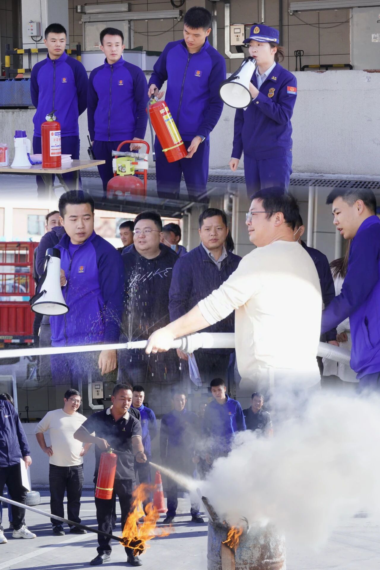 結合本次演練,消防支隊教官開展了消防安全知識培訓及滅火器材實操教學。教官詳細講解了火災的成因、初期火災撲救方法、疏散逃生技巧等知識,并針對園區常見的干粉滅火器、二氧化碳滅火器等器材的使用方法進行了手把手教學。"提、拔、握、壓",在教官的指導下,商戶和員工們逐一上前進行實操演練,親身感受滅火器的使用要領。大家紛紛表示,通過實操訓練,真正掌握了滅火器材的使用方法,今后在遇到初期火災時能夠更加從容應對。