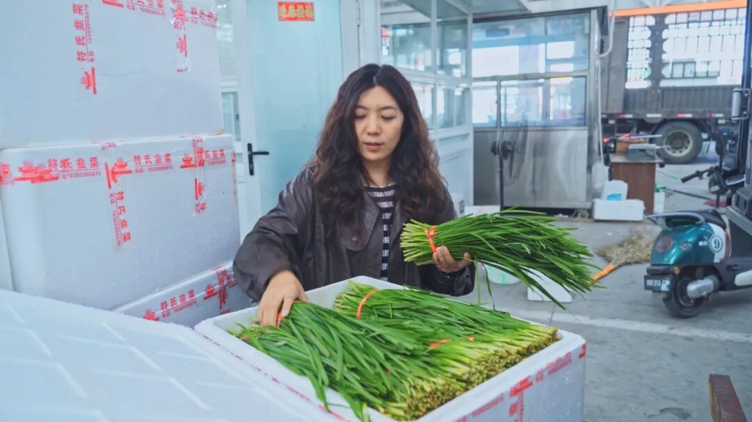 符秀華的手機(jī)相冊里,存著一張2020年初的照片:寒冬中,她裹著厚羽絨服,露天坐在一張簡易桌凳前,背后是嘈雜的貨車和堆積如山的韭菜筐?!皬脑缟咸旌谧酵砩咸旌凇?,是她對創(chuàng)業(yè)初期的概括。如今,她在首衡擁有數(shù)間檔口和獨立辦公室,空調(diào)水電俱全,“真像在公司當(dāng)白領(lǐng)一樣”。這數(shù)年的變遷背后,是她從北京寫字樓白領(lǐng)到年銷萬噸的“韭菜女王”的轉(zhuǎn)型之路,更是一條從田間到餐桌的品質(zhì)升級之路。