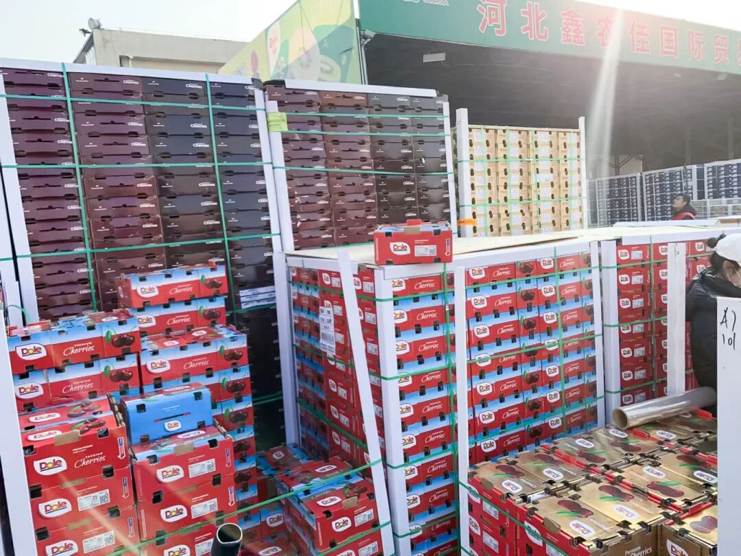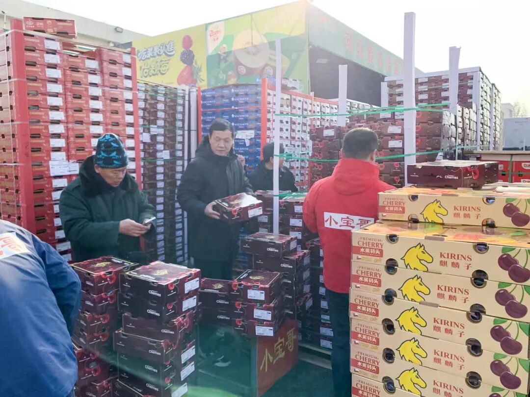 走進(jìn)首衡高碑店市場進(jìn)口水果交易區(qū),一顆顆紅如瑪瑙、飽滿緊實的車?yán)遄愉仢M檔口,桑提娜、拉賓斯等經(jīng)典品種穩(wěn)站 C 位,寧巴、皇家黎明等早熟品類憑借空運先發(fā)優(yōu)勢搶灘市場,全方位滿足不同需求。來自京津冀的商超、水果店采購商絡(luò)繹不絕,爭相查驗、訂購,熱鬧的交易場面成為今冬市場最亮眼的風(fēng)景線。
