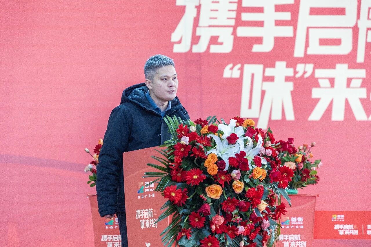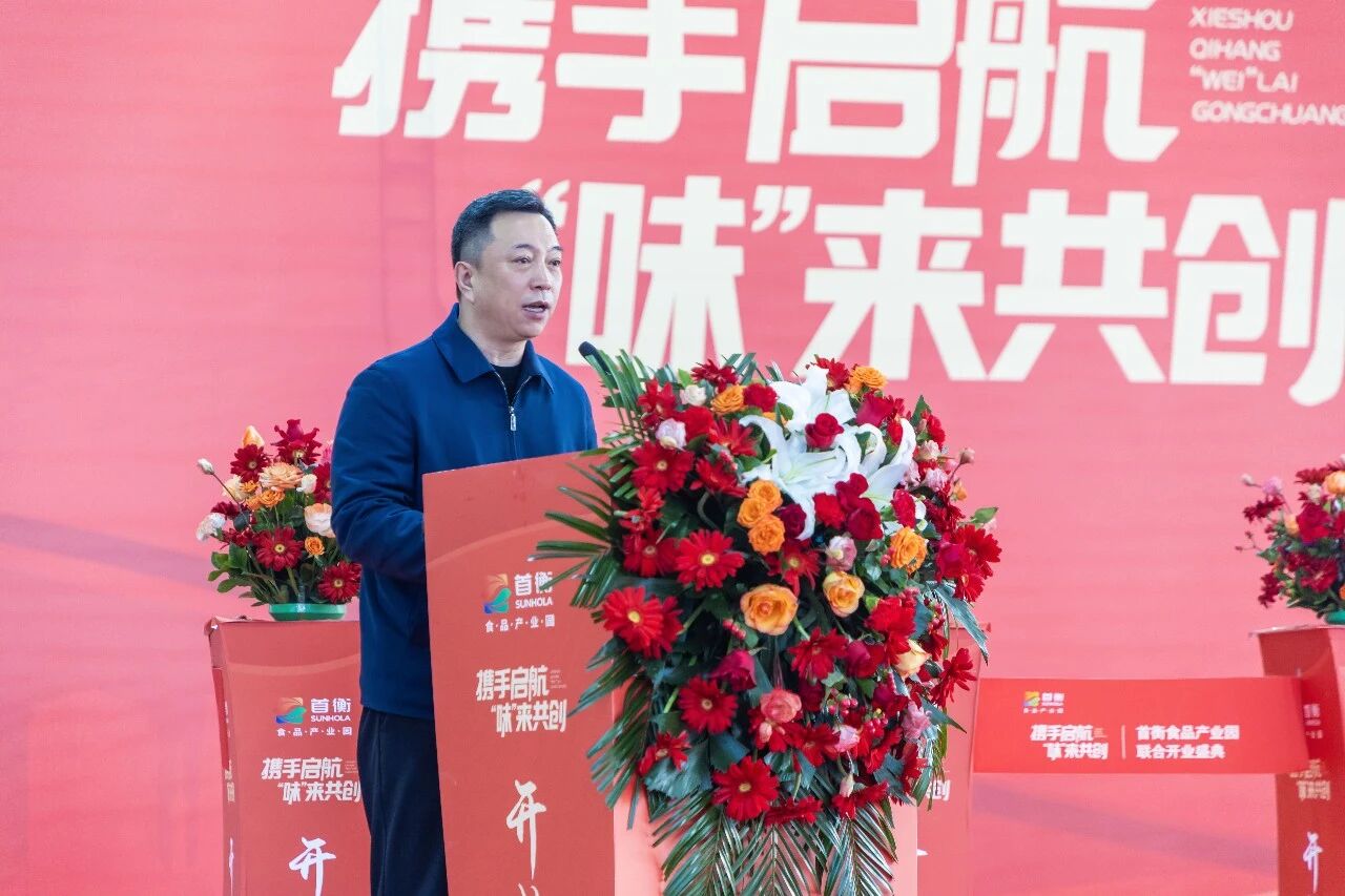 魏樹儉在發言中代表首衡集團向開業企業表示熱烈祝賀。他指出,此次聯合開業標志著一批優秀企業正式加入首衡大家庭,一條集生產、流通、創新于一體的現代食品產業鏈正加速成型。他表示,首衡集團始終秉持“與企業共成長”的初心,致力于打造深度賦能、協同共生的產業生態平臺,通過精準政策對接、完善配套服務、高效運營管理,推動園區內上下游企業便捷對接、生產流通無縫銜接,持續激發“內循環”活力。他強調,未來,首衡集團將以最大誠意、最優資源、最實舉措支持企業發展,攜手政府與社會各界,共繪食品產業高質量發展新藍圖。