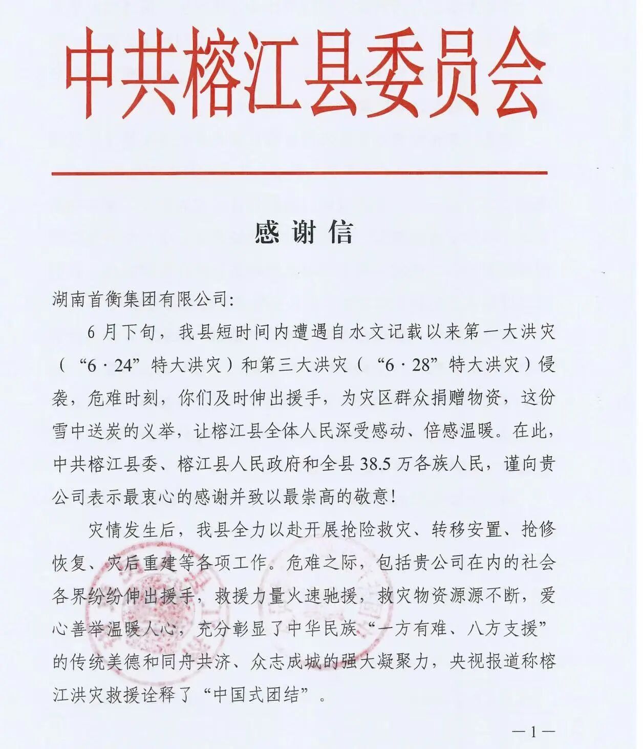 這份情誼,被榕江人民銘記。不久后,一封承載著38.5萬榕江人民真摯謝意的感謝信跨越山海而來,信中贊譽這份援助“詮釋擔當”、“用大愛融化寒冰”。更令人動容的是,榕江縣特地發出星光熠熠的邀請函,誠邀首衡共襄“村超”感恩盛典,讓足球架起友誼的橋梁——愛的速度,贏得了最真誠的回響。