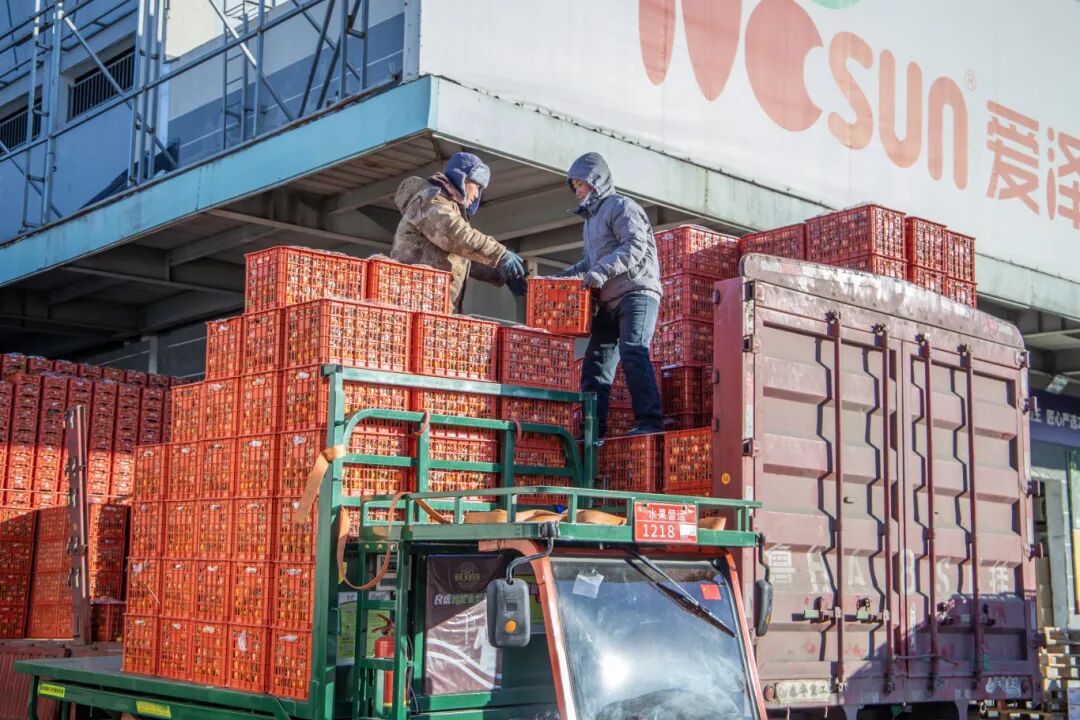 早上七點,氣溫低至零下五度。裝卸工劉杰和他的隊員們,已準時出現在首衡高碑店市場的裝卸作業區。車廂門打開,冷霧裹挾著水果的清新氣息涌出,標志著一天的工作正式開始!