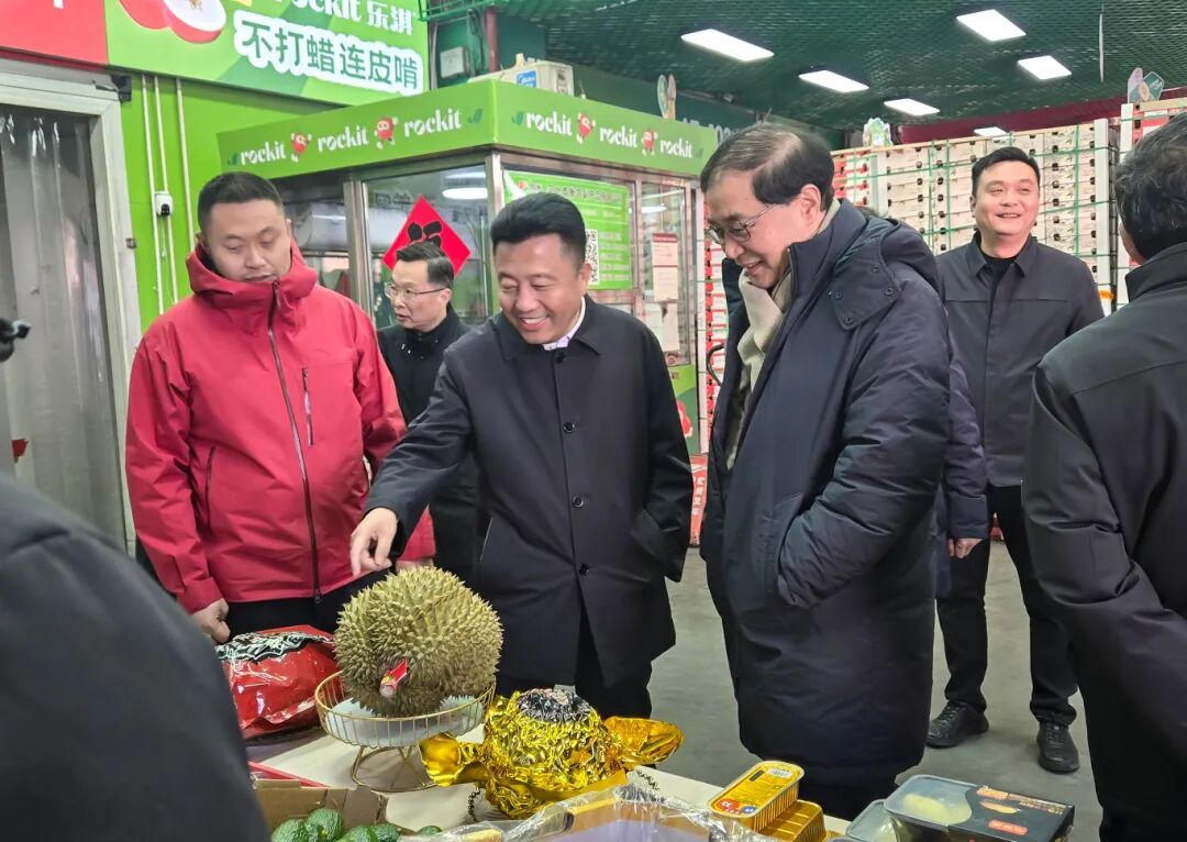 在進口水果交易區,調研組與商戶“小寶哥”負責人劉寶峰親切交流,詳細了解榴蓮、車厘子等高端進口水果的供應鏈情況。在首衡智慧冷鏈物流園,調研組與來自北京的資深商戶深入交談,關切詢問其經營現狀。商戶普遍反映,搬遷至此后,經營空間更廣、物流效率更高,依托園區形成的集群效應,實現了采購、倉儲、配送的一站式服務,綜合成本顯著優化。