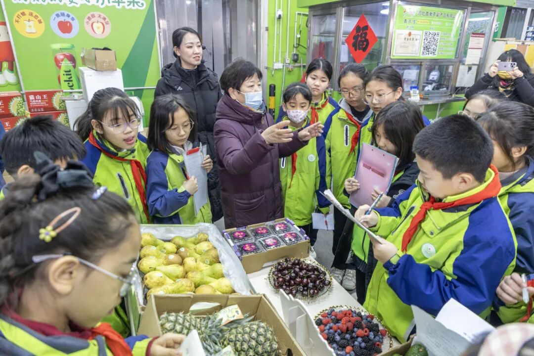 參觀過程中,孩子們始終保持著高漲的熱情,一邊聆聽一邊記錄,展現出強烈的求知欲,“車厘子是怎么從智利來到我們身邊的?”“市場每天要處理多少貨物?”“有機蔬菜和普通蔬菜的區別在哪里?”……一個個源自生活的好奇,在實地探訪中找到了生動答案。當得知首衡高碑店市場直接帶動近15萬人就業時,孩子們眼中滿是震撼與自豪,真切感受到本地龍頭企業的社會責任與擔當。