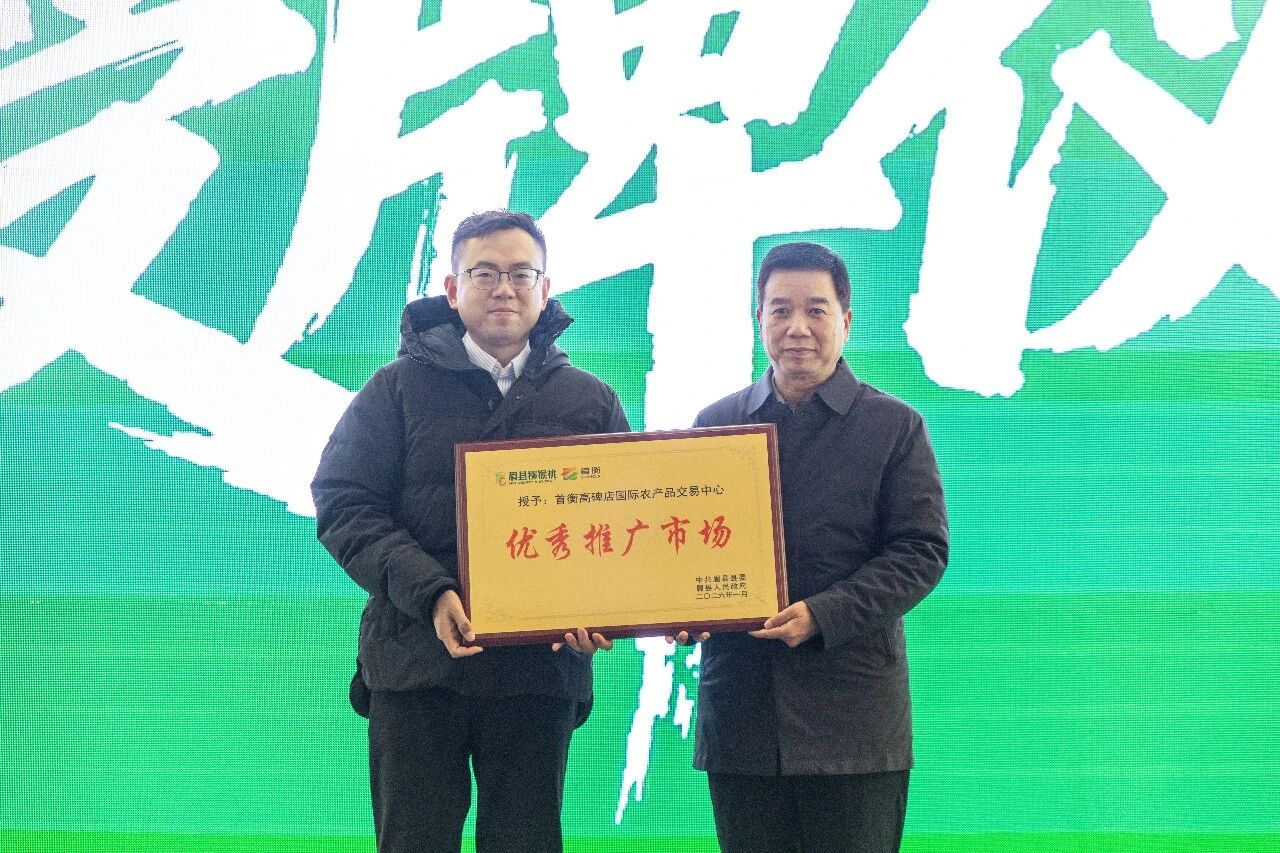 在授牌環(huán)節(jié)上,眉縣縣委常委、副縣長王富強(qiáng)向首衡高碑店市場授予了“優(yōu)秀推廣市場”稱號(hào)。