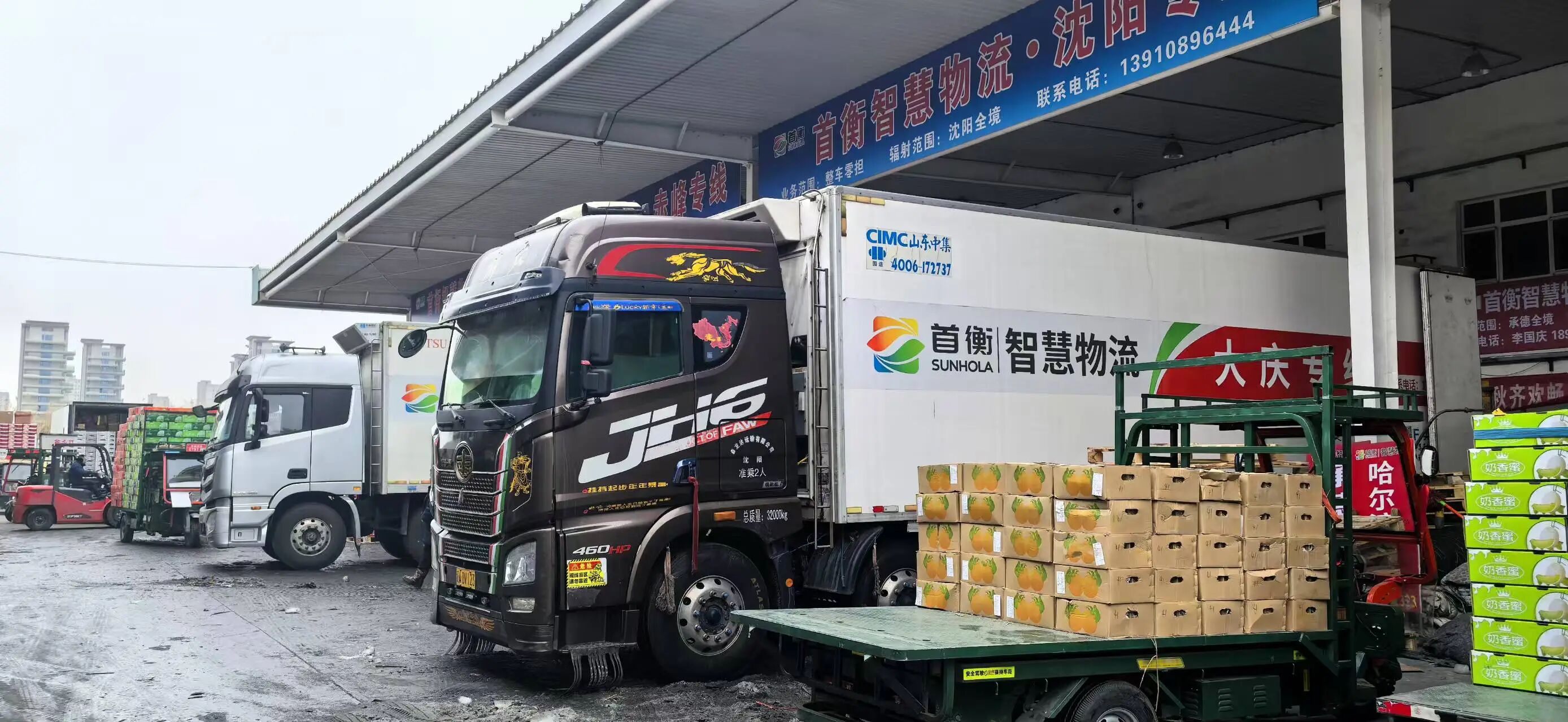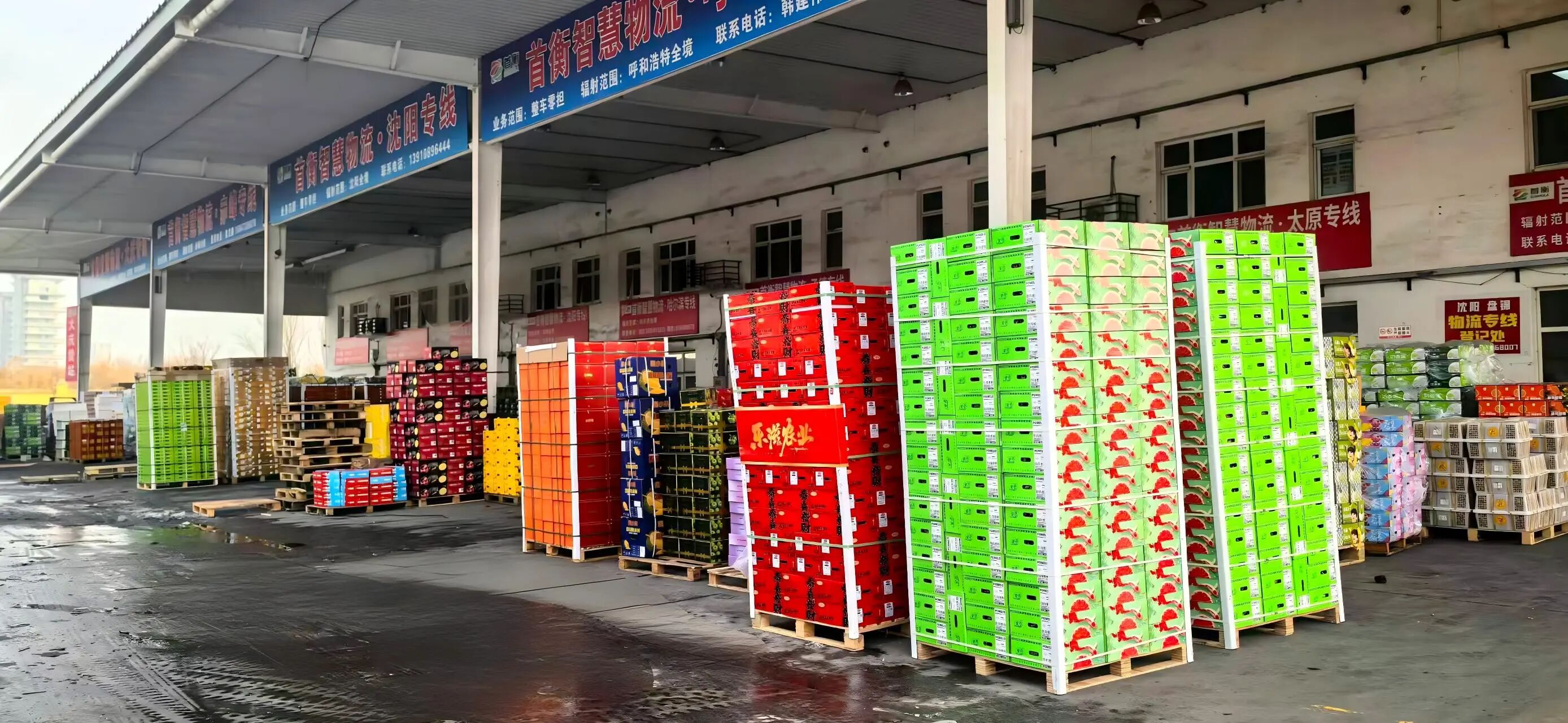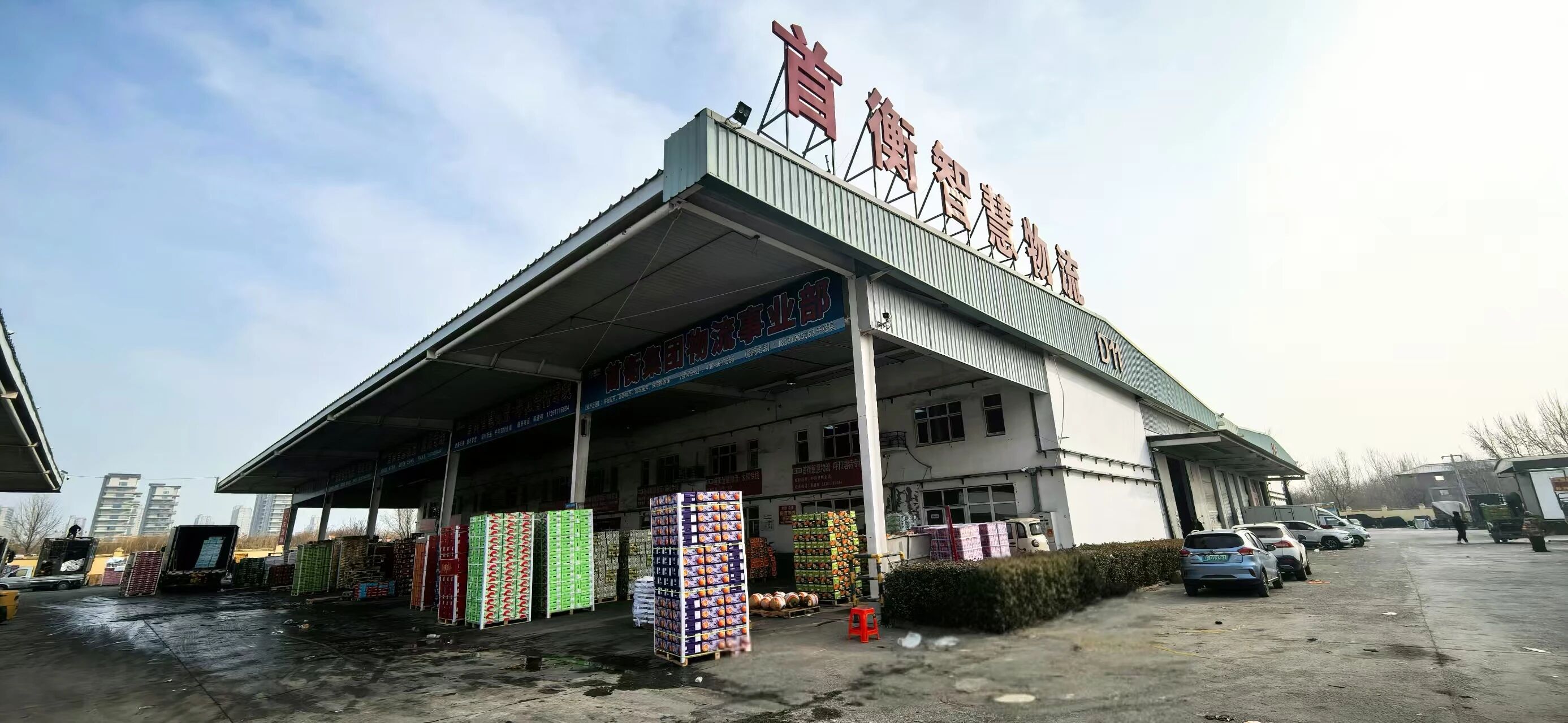 寒冬臘月的夜幕下,首衡智慧物流園內的大棚里暖意融融。15米冷藏車載滿新鮮果蔬與年貨,正緩緩駛出園區——這批貨物將在20小時后抵達千里之外的黑龍江綏化。