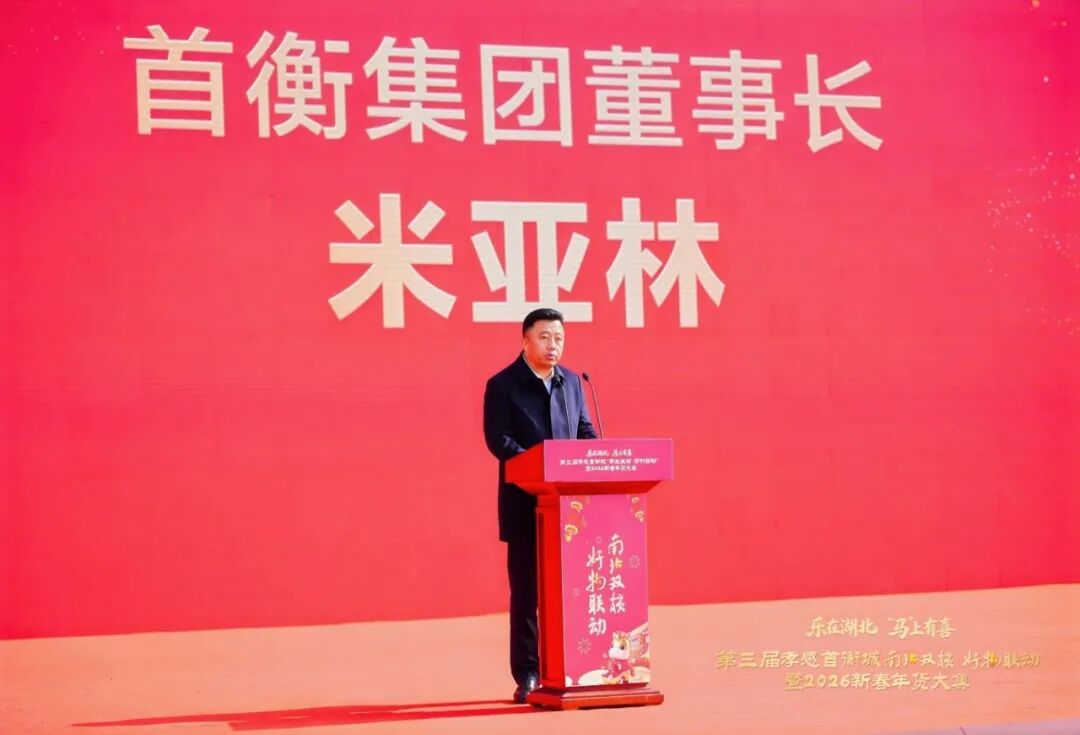 致辭環(huán)節(jié)中,孝感市委副書(shū)記王云清、孝南區(qū)區(qū)委書(shū)記張全民、首衡集團(tuán)董事長(zhǎng)米亞林先后發(fā)言,對(duì)本次年貨大集的啟幕表示熱烈祝賀,強(qiáng)調(diào)這場(chǎng)盛會(huì)既是落實(shí)“促消費(fèi)、惠民生”工作要求的具體舉措,更是首衡城發(fā)揮“南北雙核”商貿(mào)優(yōu)勢(shì)、賦能地方經(jīng)濟(jì)發(fā)展的生動(dòng)實(shí)踐,希望通過(guò)這場(chǎng)充滿煙火氣的盛會(huì),為孝感市民帶來(lái)實(shí)實(shí)在在的實(shí)惠與歡樂(lè),推動(dòng)孝感新春消費(fèi)市場(chǎng)持續(xù)升溫。