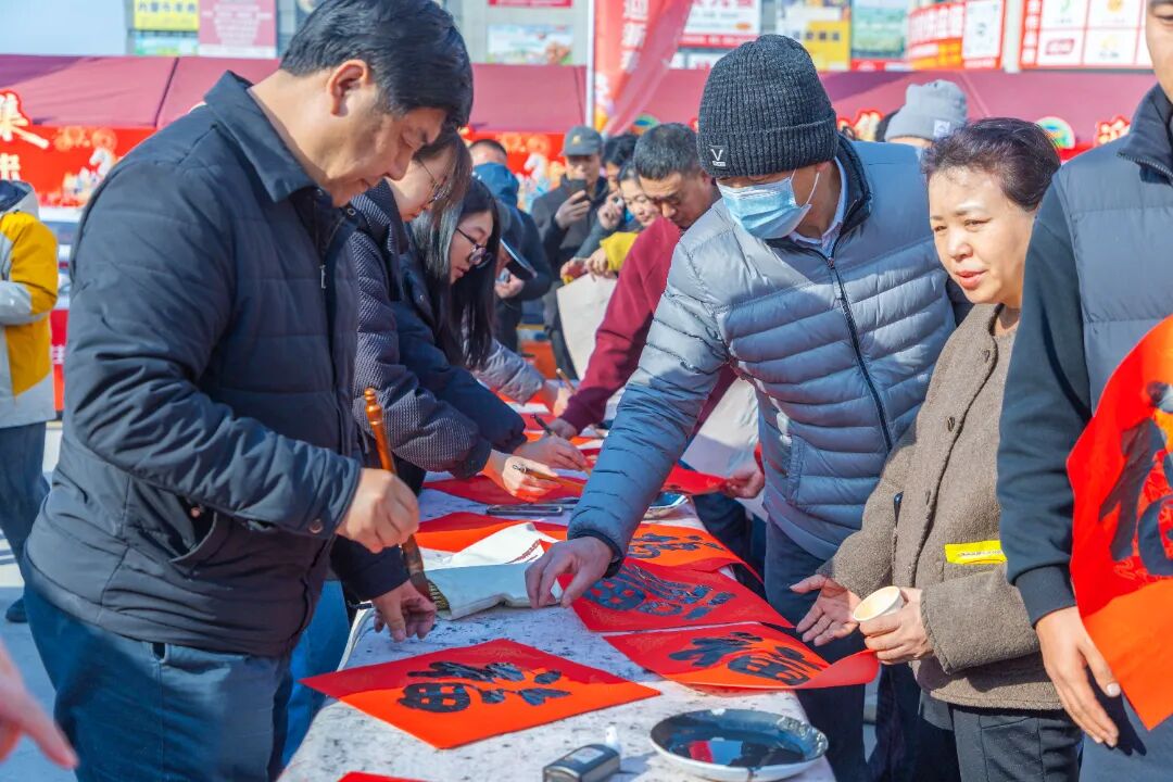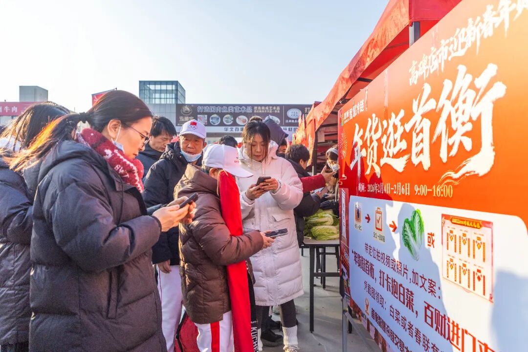 活動現(xiàn)場人頭攢動、年味十足。展區(qū)內(nèi),高碑店豆腐絲、褚記月餅等非遺好物,搭配傳統(tǒng)剪紙、石頭繪畫等手工藝品集中亮相,非遺傳承人現(xiàn)場獻(xiàn)藝,讓市民近距離感受匠心魅力;跨境生鮮、優(yōu)質(zhì)凍品等海量年貨供市民免費品鑒,一站式滿足采購需求;書法名家揮毫潑墨,免費書寫福字傳遞新春祝福;網(wǎng)紅達(dá)人駐場開展沉浸式直播帶貨,助力本土特色產(chǎn)品走出高碑店;中央舞臺上,傳統(tǒng)戲曲、新春歌舞、民俗展演輪番上演,專業(yè)團(tuán)體與民間達(dá)人同臺獻(xiàn)藝,為逛集群眾奉上精彩的視聽盛宴。此外,市民現(xiàn)場拍照帶定位發(fā)朋友圈,即可免費領(lǐng)取大白菜或春聯(lián),1000顆白菜與500份春聯(lián)讓福氣與實惠雙收。