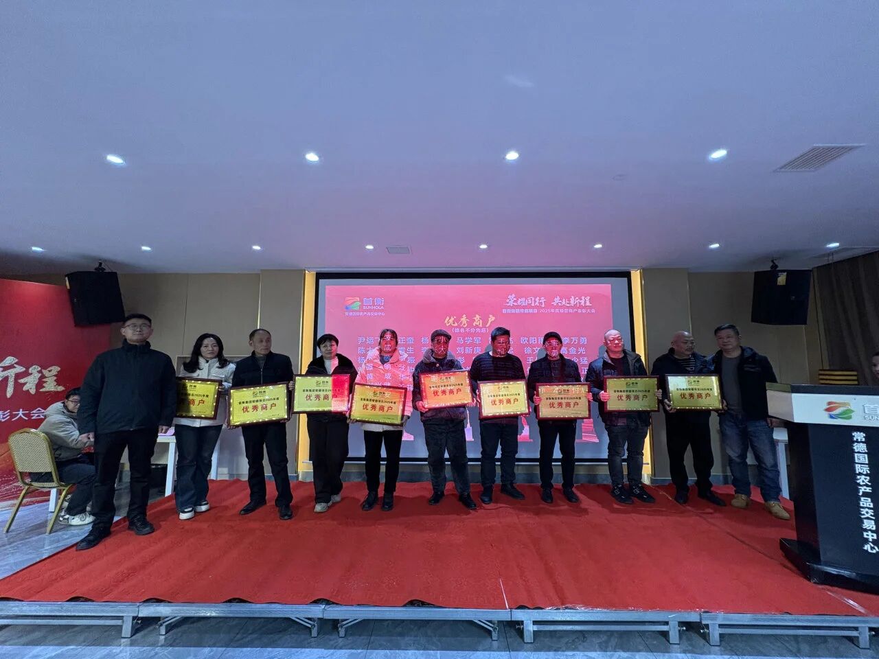 2月7日傍晚,常德國際農(nóng)產(chǎn)品交易中心“榮耀同行 共赴新程”2025年度商戶表彰大會暨答謝晚宴在喜慶、熱烈的氛圍中隆重舉行。市場管理團(tuán)隊、數(shù)百名優(yōu)秀商戶及采購商代表齊聚一堂,共同回顧過去一年的奮斗歷程,表彰卓越典范,展望嶄新未來。