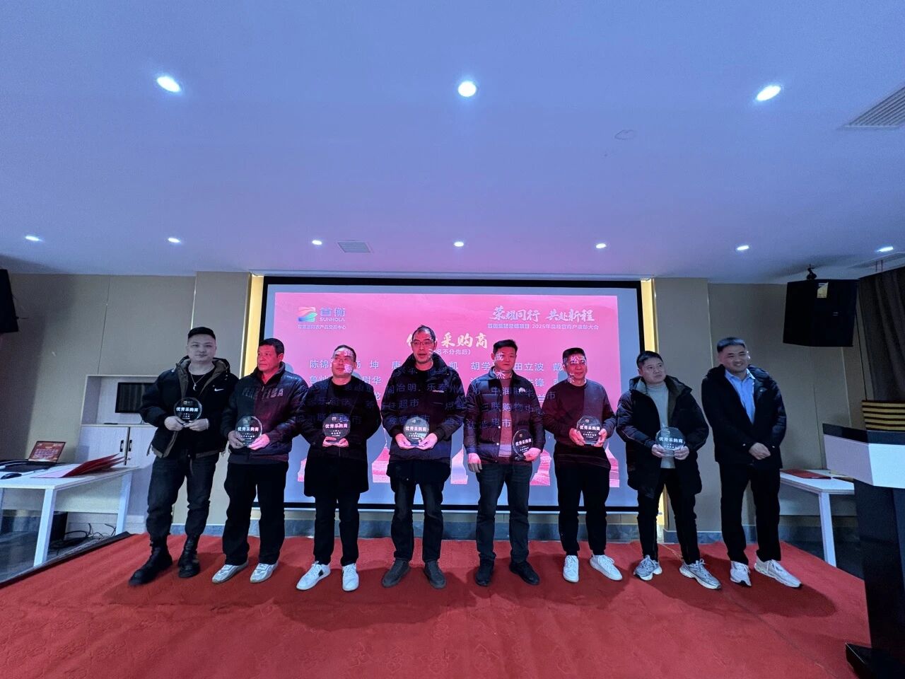 大會首先對56家“年度優(yōu)秀商戶” 進(jìn)行了表彰。他們以誠信經(jīng)營為本,以優(yōu)質(zhì)服務(wù)立足,是市場穩(wěn)健發(fā)展的中流砥柱。隨后,“年度優(yōu)秀采購商” 登上榮耀舞臺,采購商代表及采購商商超代表依次上臺領(lǐng)獎,他們作為連接市場與消費(fèi)終端的關(guān)鍵橋梁,其深度合作與信任是首衡貨暢其流的重要保障。