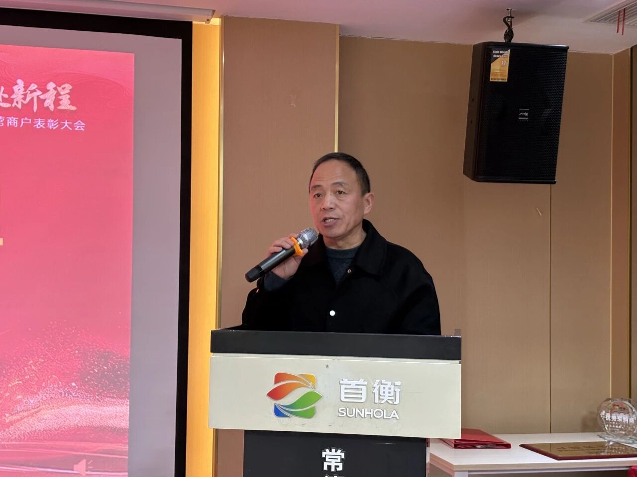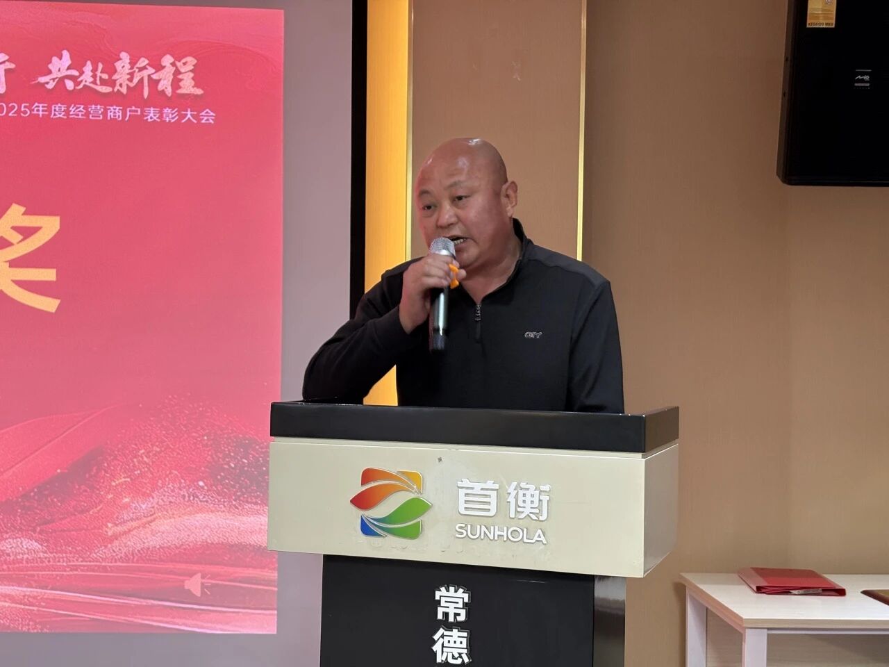 在熱烈的掌聲中,常德首衡總經(jīng)理張嶸發(fā)表了總結(jié)講話。他首先向所有獲獎?wù)弑硎咀YR,并向全體商戶、采購商伙伴一年來辛勤付出與鼎力支持致以衷心感謝。張總回顧了2025年市場在各業(yè)態(tài)運(yùn)營、供應(yīng)鏈優(yōu)化、服務(wù)提升等方面取得的扎實成績,這些成就凝聚了每一位參與者的智慧與汗水。