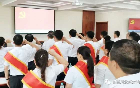 在此次表彰活動中,首衡集團有限公司機關黨支部榮獲“先進基層黨組織”榮譽稱號,黨員宋田田榮獲“優秀共產黨員”榮譽稱號。黨員盧奕明代表首衡機關黨支部上臺領獎,并作為企業黨支部代表在會上作“以黨建為引領、以實干促發展,在順應京津冀協同發展大勢中擔當有為”主旨發言,詳細介紹了公司黨總支在黨建工作所取得的歷史性成就,匯報了公司在踐行國家戰略、助力精準扶貧、熱心公益事業、做好民生保供、帶動經濟發展等方面發揮的重大作用。最后,全體黨員共同重溫入黨誓詞。全體黨員身姿挺拔,握緊右拳,莊嚴宣誓,一句句鏗鏘有力的誓詞彰顯了全體黨員鋼鐵般的理想信念,彰顯了許黨報國的責任擔當。
